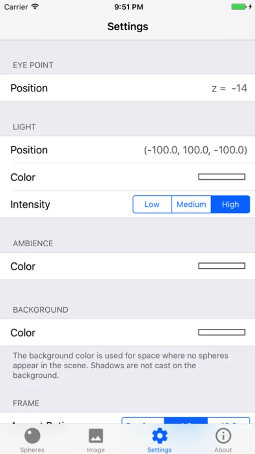 RayTracer lets you visualize graphics. Customize the scene by adding spheres and modifying the eye point, light, ambience, background, and view frame. Render your image and observe the results--RayTracer accurately accounts for these factors in producing the image.