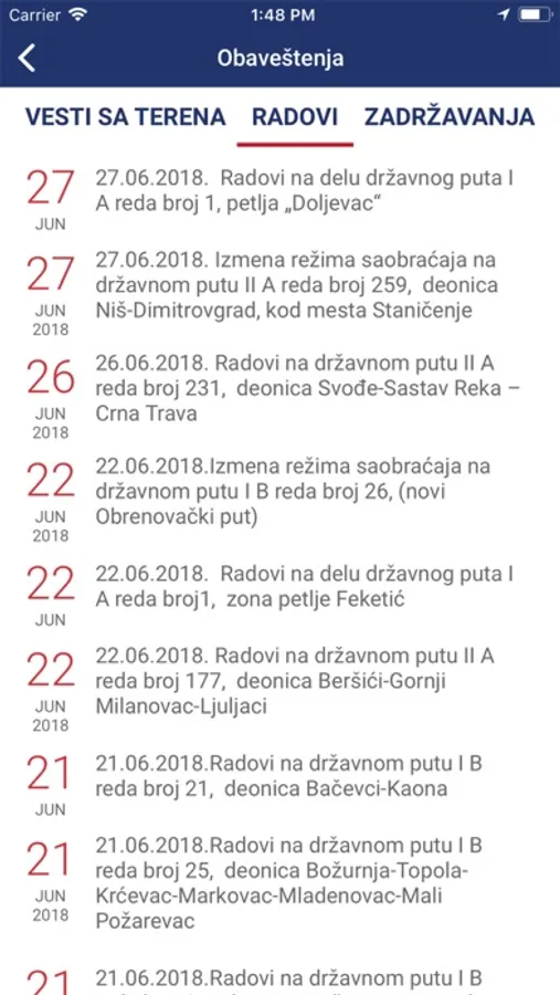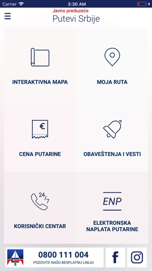 PE „Roads of Serbia“ official mobile application is designed in order to simplify user information about I A Category state road conditions and provide all other informations significant for drivers. This mobile app is free.
