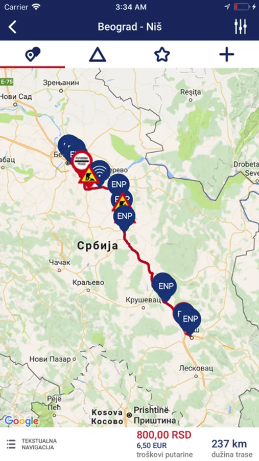 • Moja Ruta – Definiše željenu rutu korisnika i uključuje informacije od značaja
