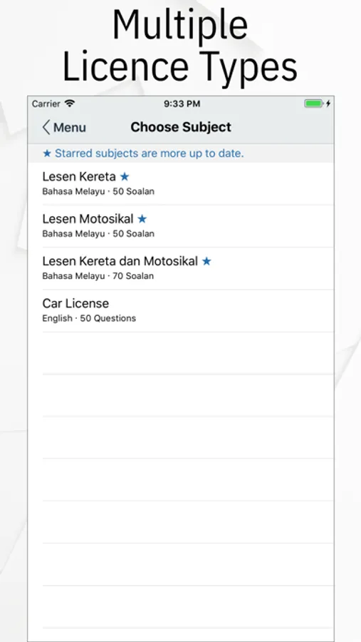 Contain questions for car license test, motorcycle license test and car and motorcycle license combined test.