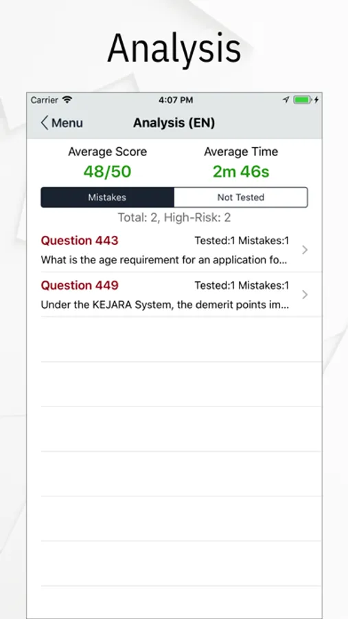 Analysis module will collect and analyse information from all the tests you have taken and present useful information such as questions that you had answered incorrectly in the previous tests.