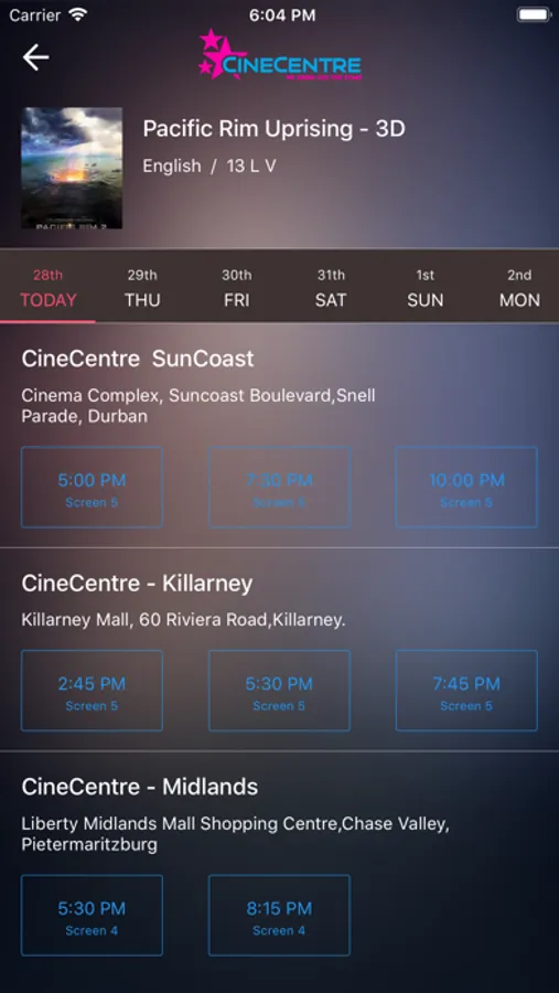 Now Booking movie tickets for CineCentre, South Africa is made simple with our iOS application.