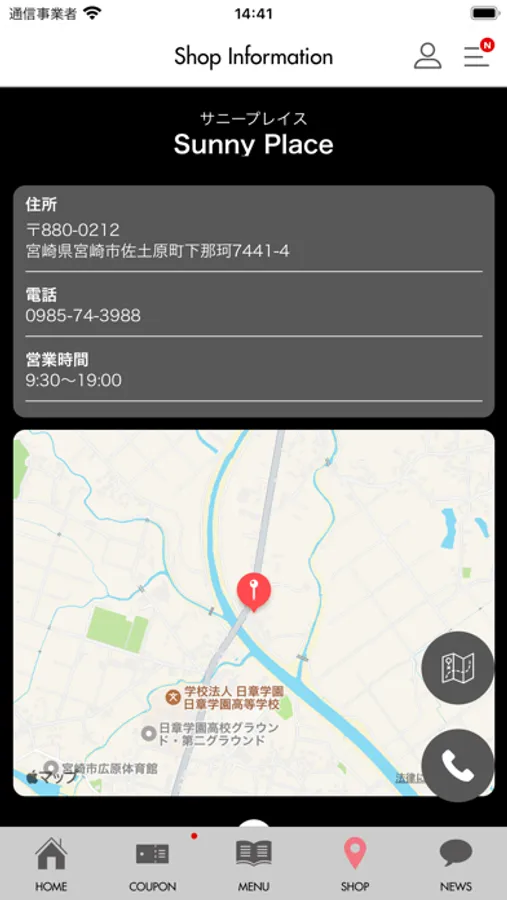 アプリを通して「Sunny Place」の新着情報やお得な情報を