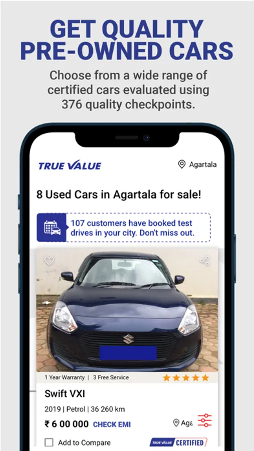 • FAQs: Find answers to common queries about the app, buying and selling used cars with Maruti Suzuki True Value, and more.