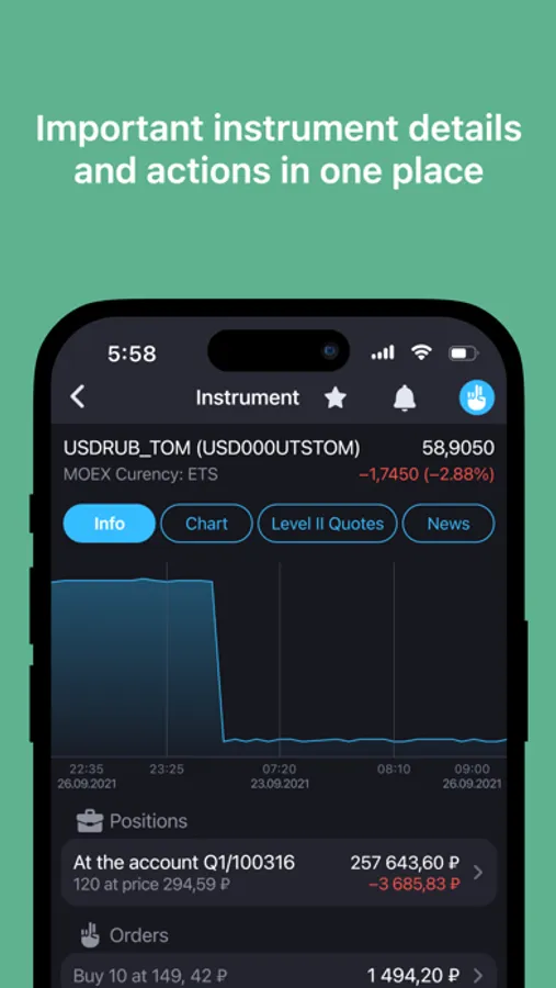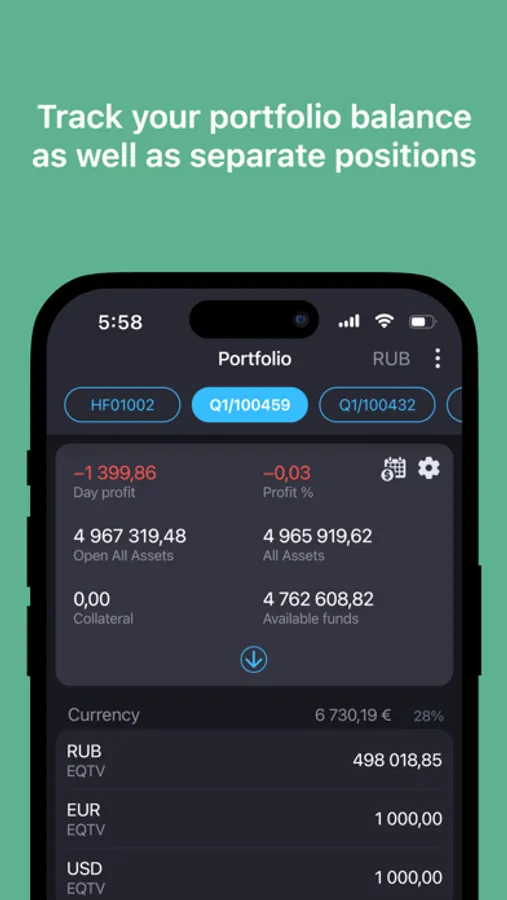 iQUIK X is a new user application (trading terminal) of QUIK – the user may trade financial instruments, view exchange quotes, monitor portfolio parameters and more.