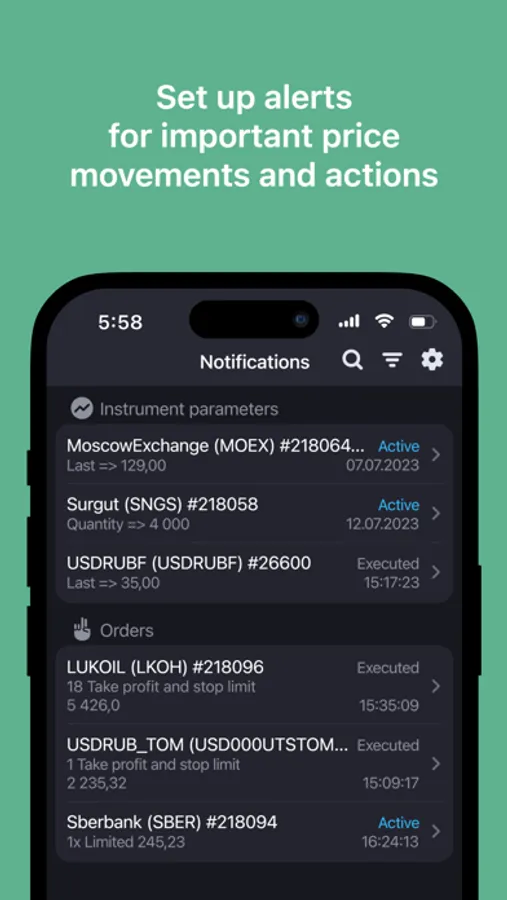 - Monitoring of current financial instruments quotes with possibility to customize a watchlist,