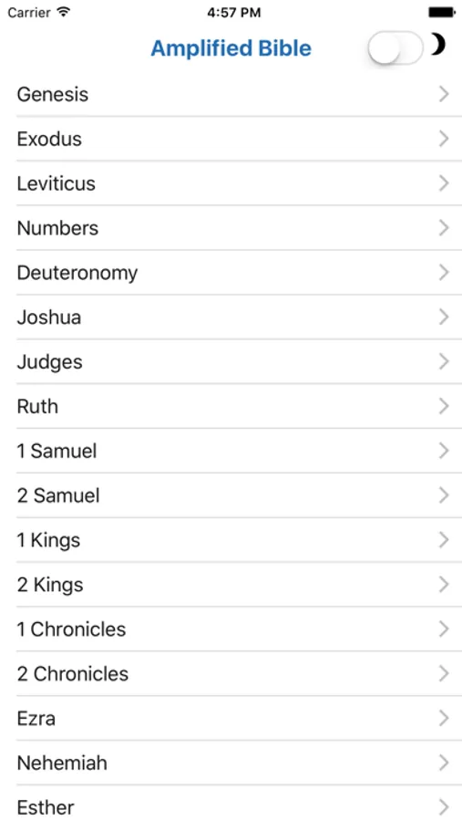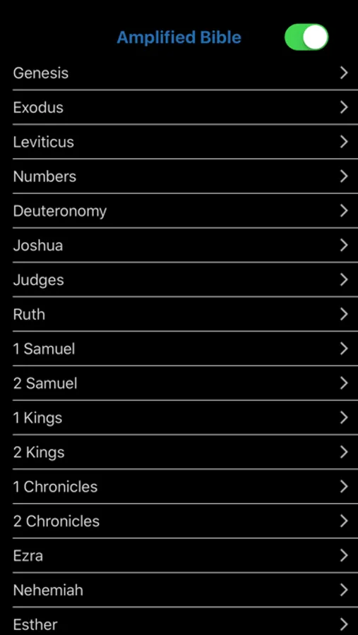 2 Samuel / 1 Kings / 2 Kings / 1 Chronicles / 2 Chronicles / Ezra / Nehemiah / Esther / Job / Psalm / Proverbs / Ecclesiastes / Song of Solomon / Isaiah / Jeremiah / Lamentations / Ezekiel / Daniel / Hosea / Joel / Amos / Obadiah / Jonah / Micah / Nahum / Habakkuk
