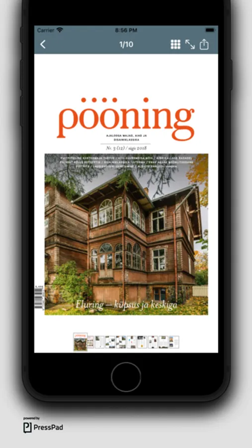 The magazine Pööning (An Attic) and English version Estonian Heritage Today focuses on the introduction, preservation and misuse of the Estonian national heritage, and is targeted to a wider audience. Pööning focuses on houses with history, restoration, historical garden design, design classics, traditional handicraft and masters etc.