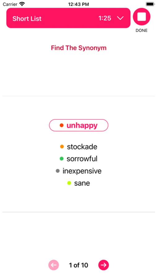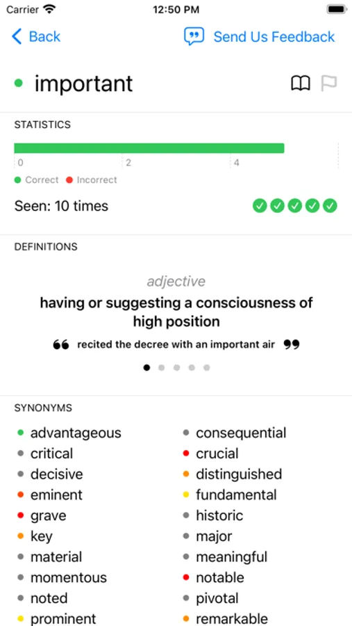 OneOnePlus Vocab's algorithmic engine adapts and adjusts its selection strategies so that you're always experiencing the correct balance between new words, reinforcing words you know well and presenting opportunities to have extra exposure to words where you may have weaker understanding.