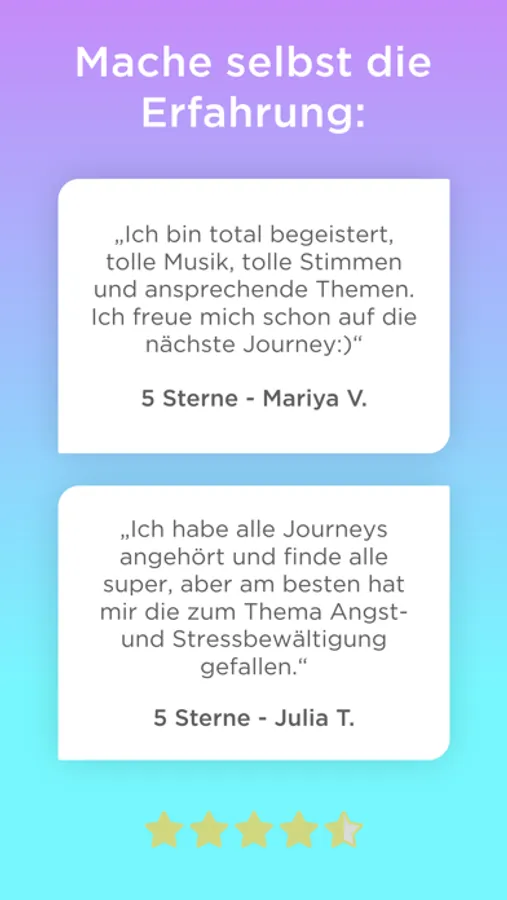Medizinische Studien zeigen, dass meditative Quantenreisen und Entspannungsverfahren wie unsere Mental Journeys Dich in deinem Beruf, Deinen Beziehungen und Deiner physischen und psychischen Gesundheit effektiv und nachhaltig unterstützen und fördern. Die Mental Journeys führen Dich gleichzeitig in einen Zustand tiefer Entspannung und Erholung. Erlebe sofortige Verbesserungen für Körper, Geist und Bewusstsein – wissenschaftlich bestätigt. Sieh Dir jetzt unsere Mental Journeys an und fange sofort damit an, Dein Leben zu verbessern.