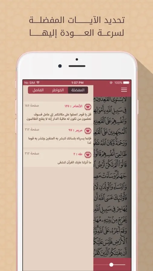 بإمكانك اختيار عدد من الآيات توضع في المفضلة، لتعود إليها لاحقًا.