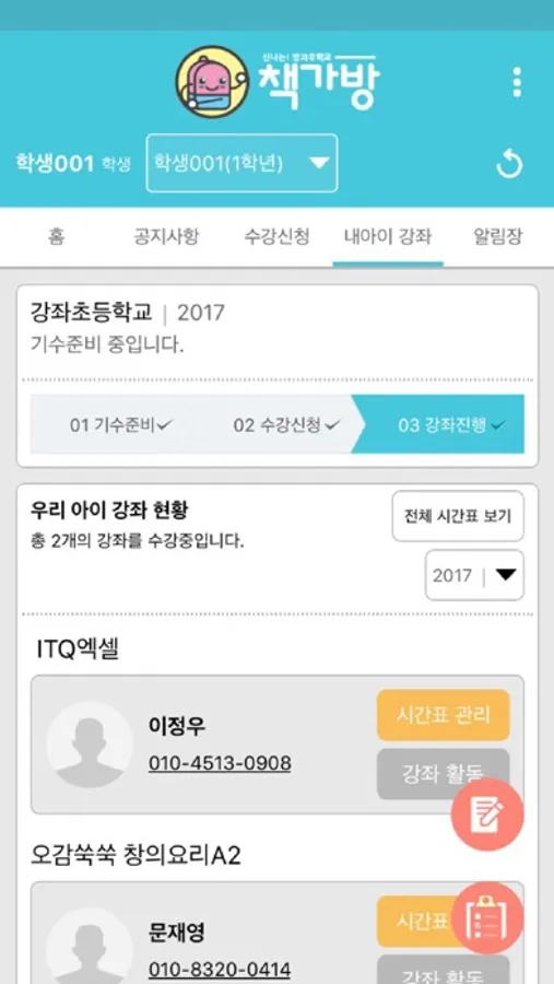 "책가방" 은 방과후학교 운영을 위한 프로그램입니다.