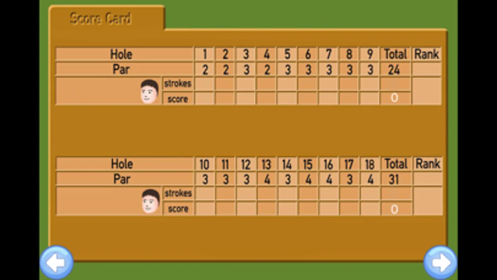 Product feature bullets: • Realistic Golfl ball physics • Great gameplay • Intuitive touch controls • One finger to play • 18 different Courses • Cute graphics and cool sounds