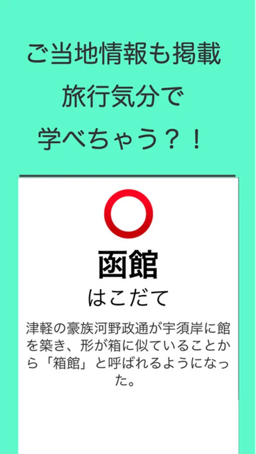 有名観光地も多数出題されるので、アプリで遊ぶだけで旅行してる気分になれる!