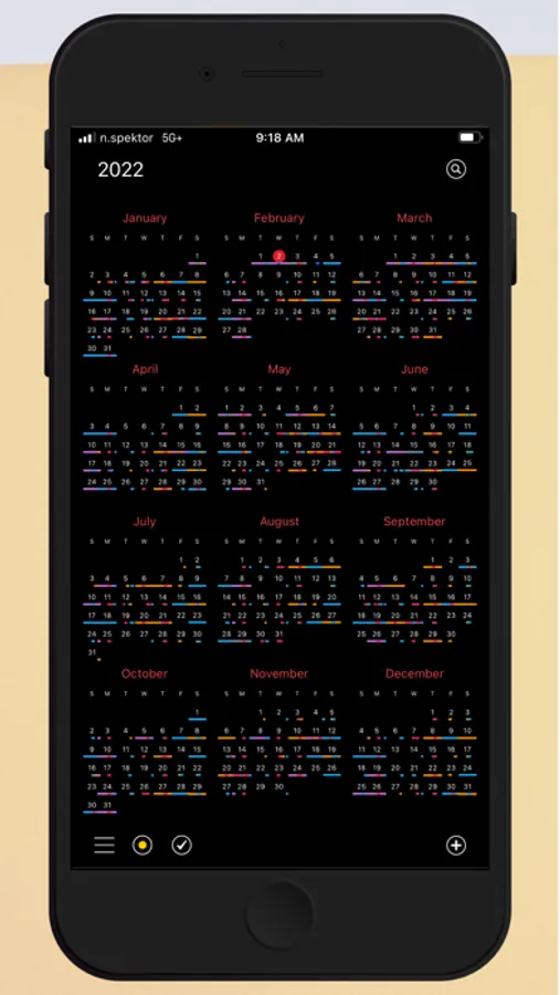 Pick your preferences – year or month, week or day, list or agenda, from light red to dark to darkest blue...