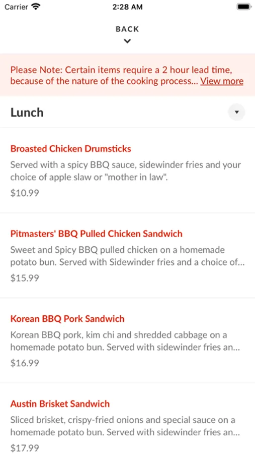 With the Pitmasters Back Alley BBQ mobile app, ordering food has never been easier. Whether you're looking for a quick snack or a full meal, we've got you covered. Just browse our easy-to-use menu, customize it how you'd like, place your order using our secure payment system, and sit back! A push notification will alert you when your order will be ready.