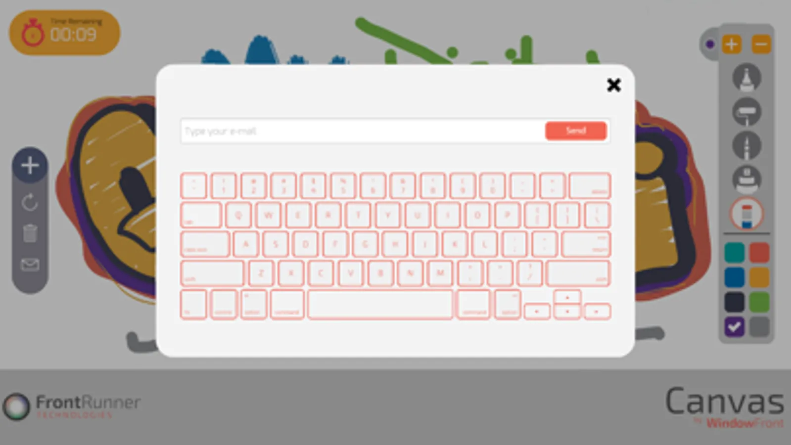 The idea behind WindowFront Canvas is simple; we give you three minutes and artist toolset (pen, paintbrush, paint roller, spray can and eraser) to produce your very own masterpiece. Once complete, you can email your creation to yourself, and then share with the world on whatever social media platforms you wish. FrontRunner Technologies will choose select works of art to appear in WindowFront PopUp installations nation-wide.
