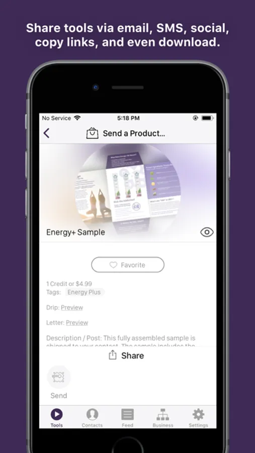 Tools: It has never been easier to share information about your products and opportunity via SMS text, email, or social media. Simply choose tools specifically designed to promote your business and share them with a contact. You'll receive a notification when contacts view a tool so you know exactly when to follow up! No data connection? No problem! Simply download tools such as videos in the app beforehand for offline playback.