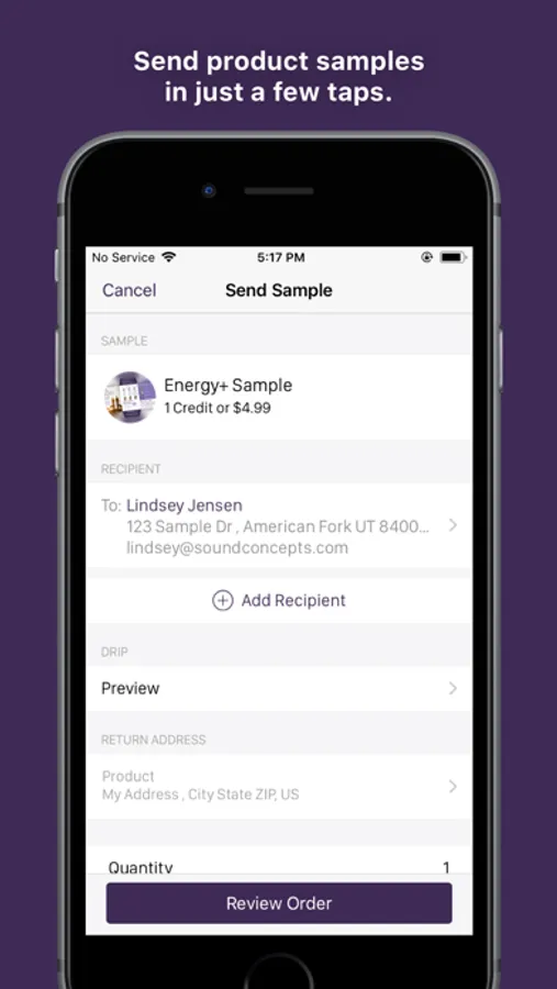 Samples: There’s no better way than samples to allow prospects to experience your products and the benefits they deliver. Leverage the power of digital and physical with the ability to send product samples directly to prospects. Users receive notifications to help them follow up, and recipients receive emails to help educate them. Site visitors also have the ability to request a sample. Simple and powerful!
