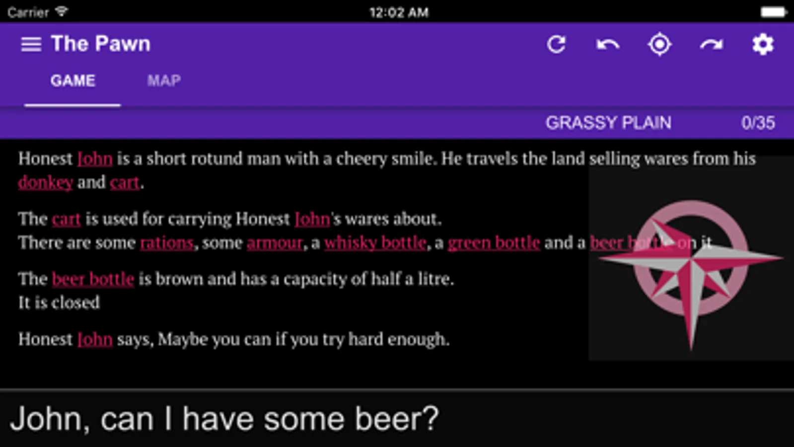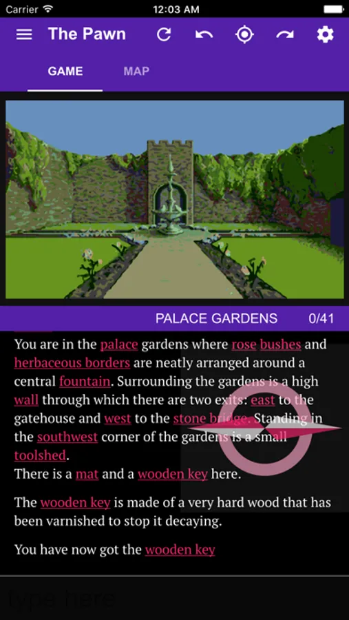 Quickly navigate with a handy compass gadget. It shows the available exits at all times, simply tap to move.