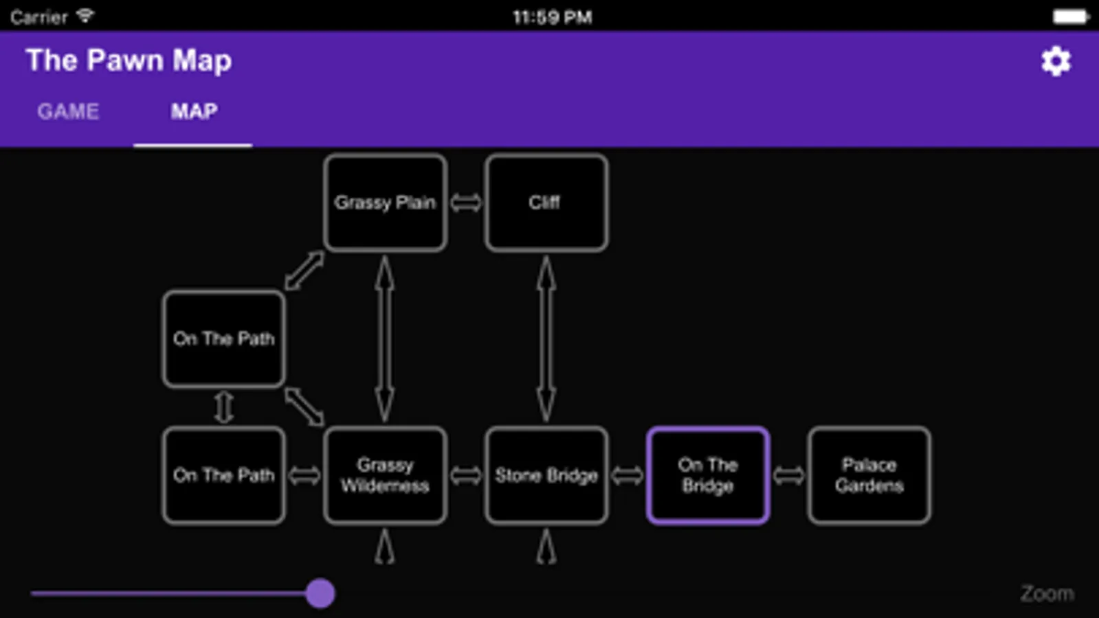 No need to draw out the map, we do it for you. As you explore the game, the map page will expand. Tap any previous room on the map to "fast-goto" that location.
