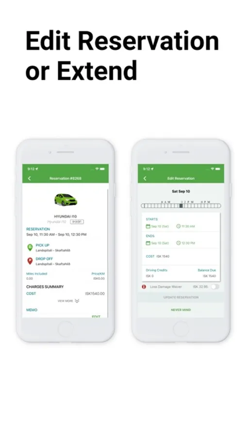 Notaðu appið til þess að bóka bíl með mánaðar-, viku- eða engum fyrirvara.