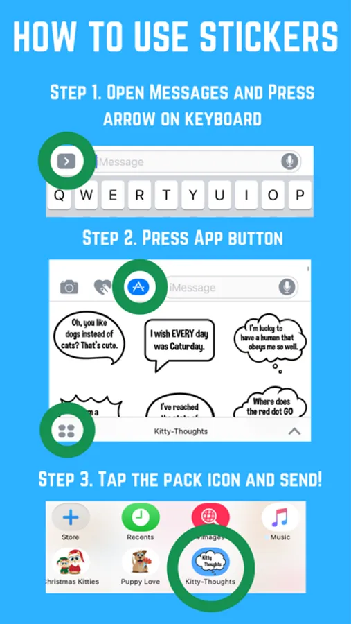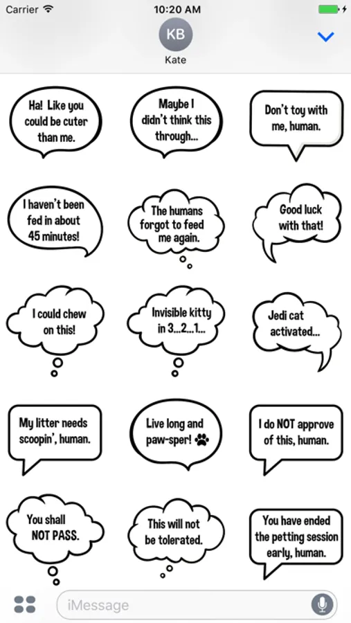 Laugh with your friends about what your cats must be thinking about. These fun stickers can be used anywhere in your iMessage chat.