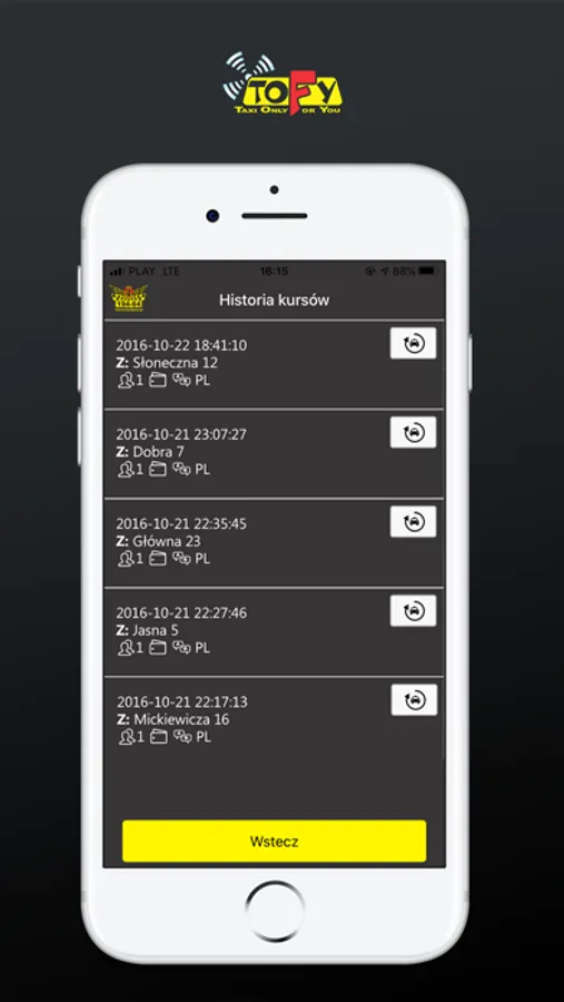 Tofy to nie tylko jedna firma. Nasza aplikacja zrzesza dziesiątki korporacji z całej Polski! Dzięki temu, niezależnie od tego gdzie jesteś, Tofy znajdzie dla ciebie najbliższą taksówkę podłączoną do systemu.