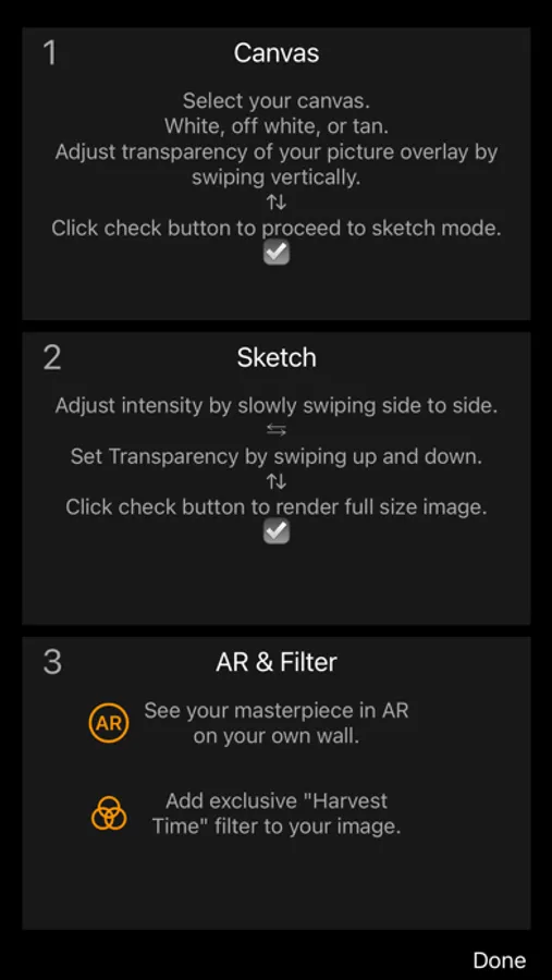 Canvas Art is both an application and a Photos editing extension so you can create you can also create canvas art right in the Photos app. Users are able to choose a canvas, tan, white, or gray, and set the transparency of your image on the canvas with looks ranging from washed out to photo like. After that the special charcoal outline effect is added and users have a wide range of intensities to work from. The finished product looks like canvas painting or charcoal sketch.