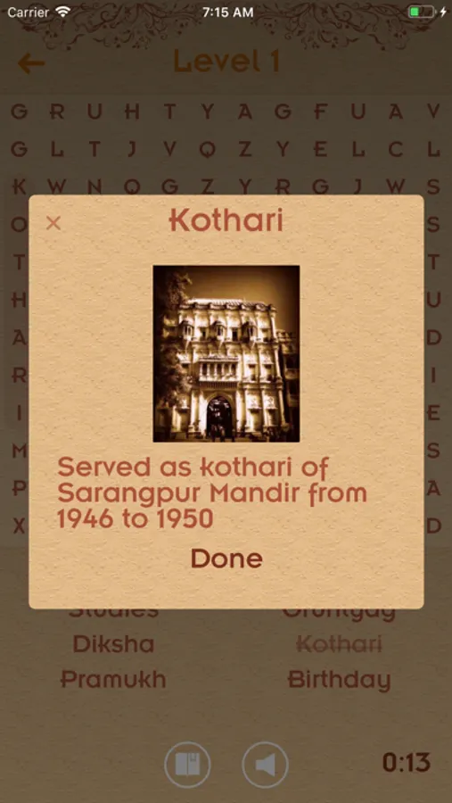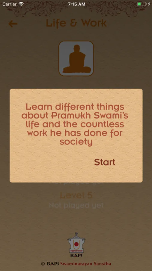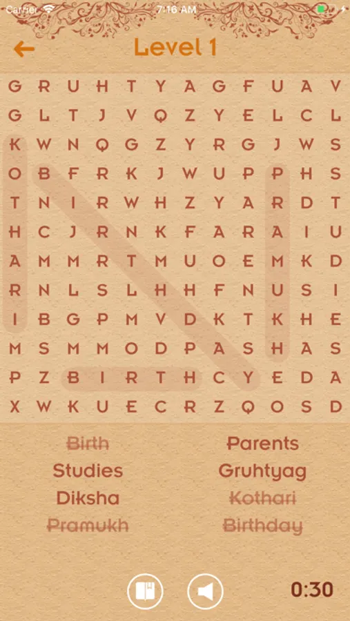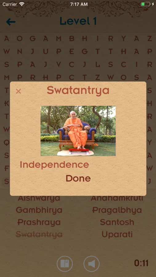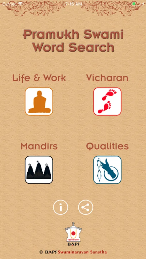 This Word Search App game has been made to express our gratitude to Pramukh Swami Maharaj who lived his life and did everything ‘In the joy of others.” This game is an educational game that enables every player learn about the life of Pramukh Swami Maharaj through four topics: