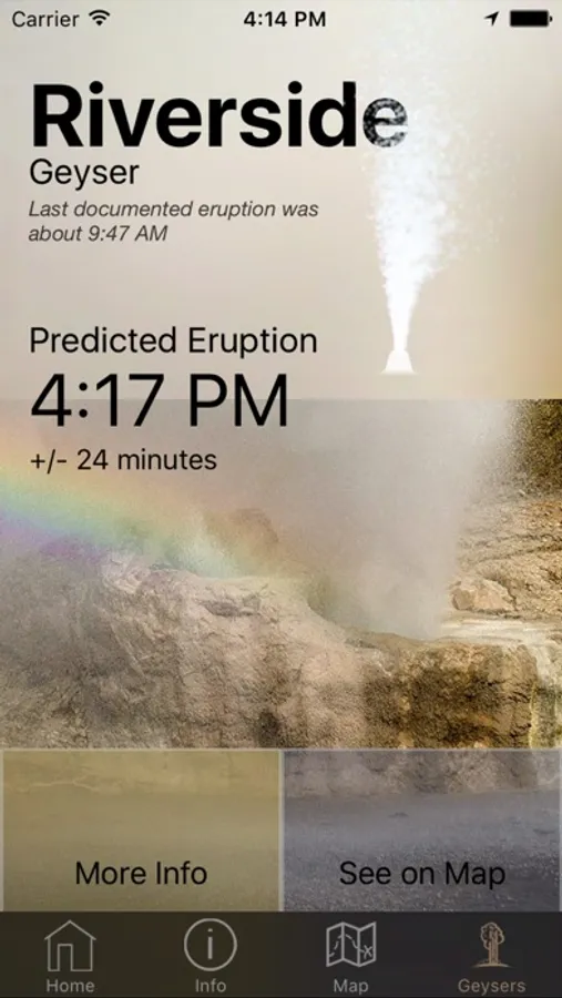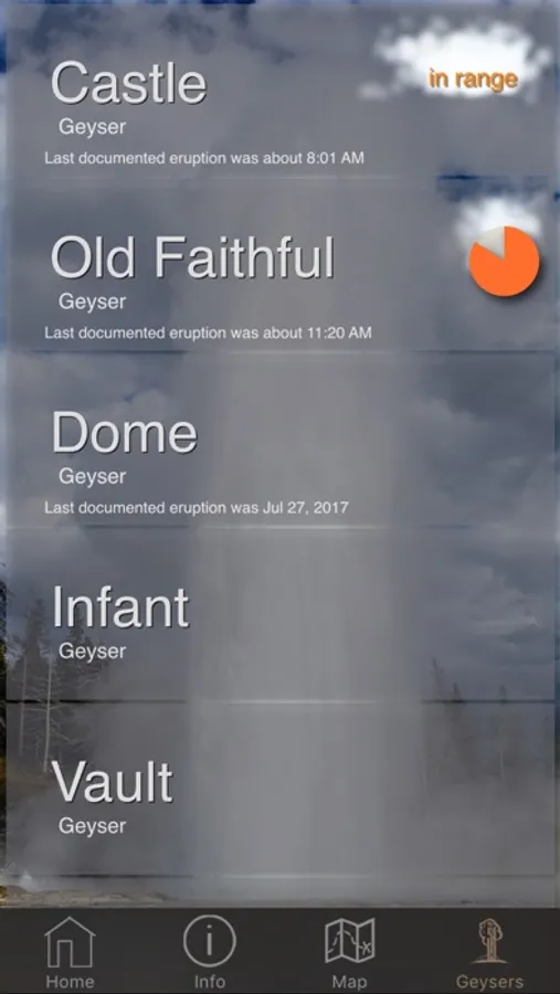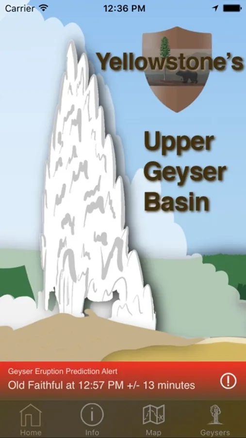 This app has information on over 40 geysers in the basin. An offline map is included to help guide as you explore. A few geysers erupt with regularity. For these, we’ve included eruption predictions in the app.