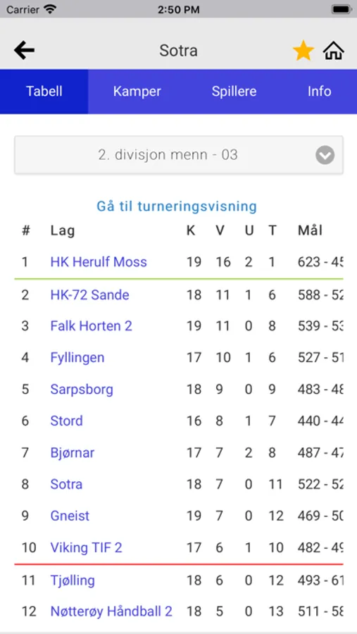 • Motta varsler om hendelser tilknyttet lagene du følger
