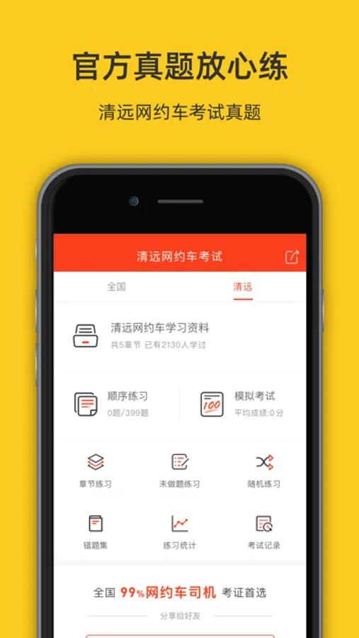 滴滴出行、首汽约车、神州专车、一号专车、美团司机、易到用车、T3出行、曹操专车司机都在用的练题软件,网约车司机考试拿证就用清远网约车考试App。清远网约车考试App包含清远网约车考试指定学习资料,方便司机系统性学习,为清远网约车司机考证保驾护航。