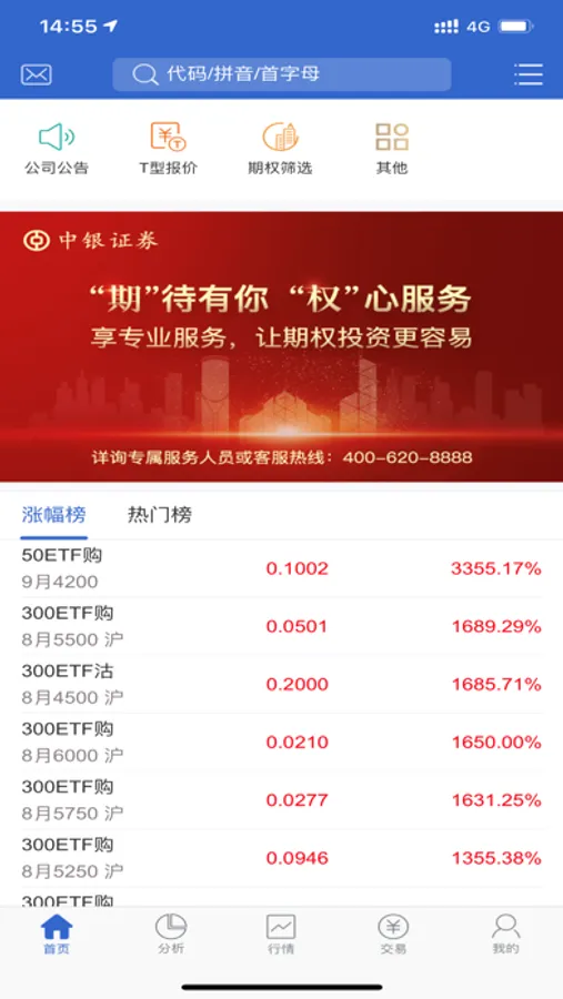 中银汇点期权手机客户端,是集股票期权行情、交易功能为一体的期权网上交易手机软件。为投资者提供丰富的行情展示、T型报价、合约筛选、合约交易、标的交易等功能。