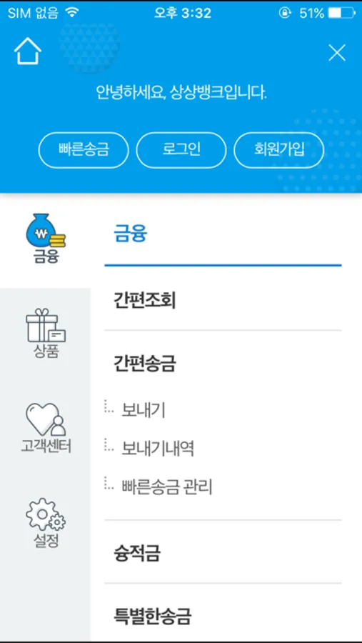 ■ 슝적금 : 상상모바일적금 계좌번호와 상상뱅크 이용계좌를 연결하여 언제, 어디서든 맞춤 금액을 쉽고, 빠르고, 재미있게 드래그하여 납입하는 서비스