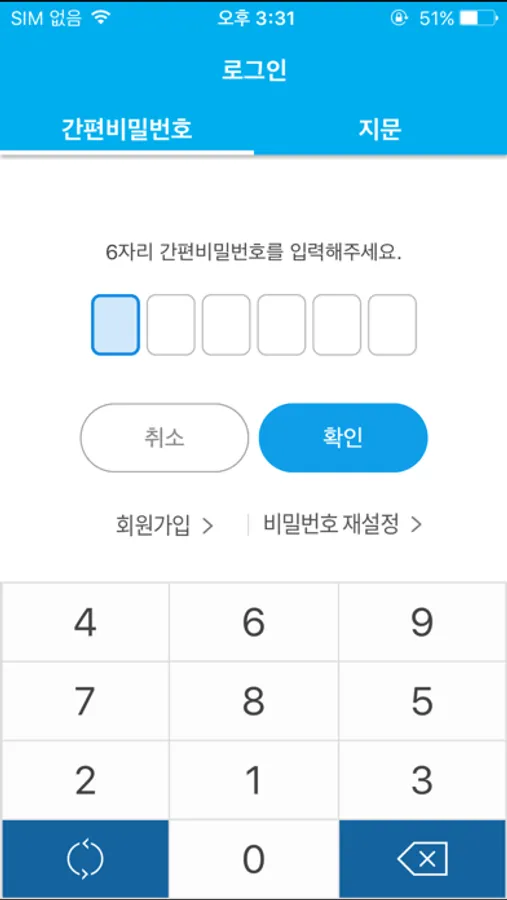 단말기에서만 이용 가능합니다. (지문인식이 안되는 기기는 간편비밀번호 이용)