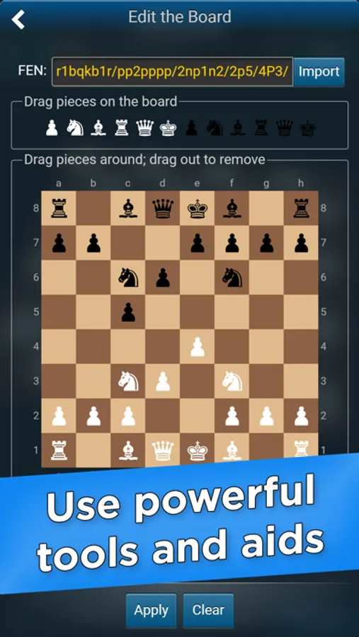* Choose from different boards: 2D, 3D and a stunning fantasy chess set.