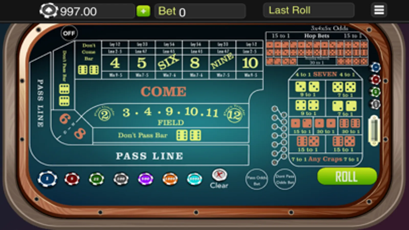 The real time randomized dice roll will make the game more interesting like in real casino craps table.