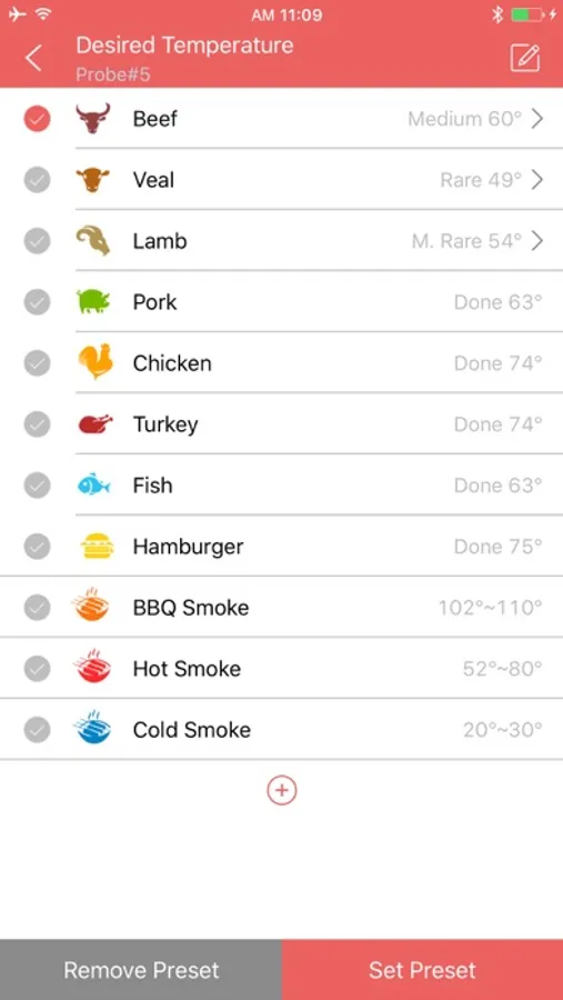 - customize variety of cooking modes for different meat types and doneness level.