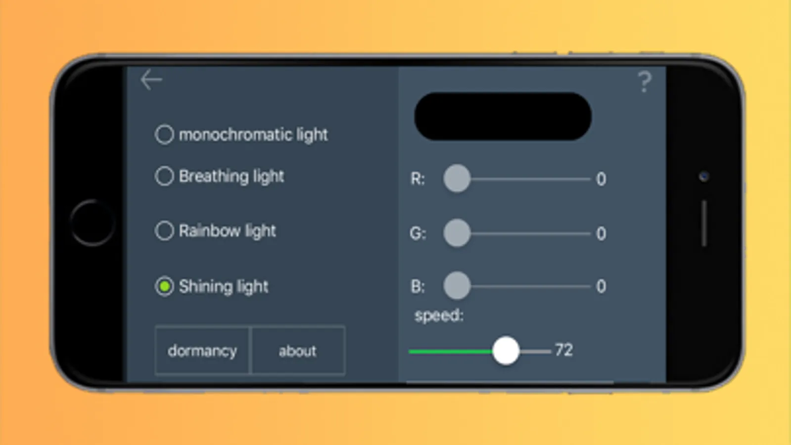 Finally,we can adjust the parameters of light color(red,green,blue), running speed, spin speed in setting.