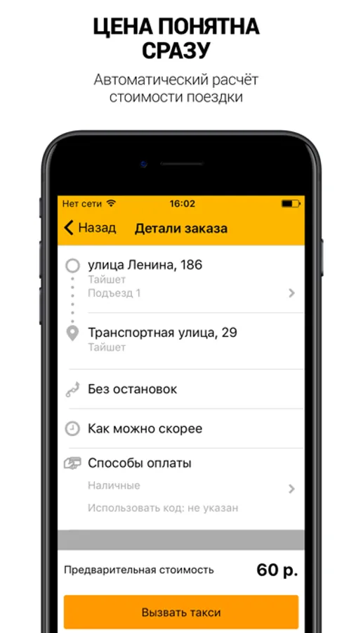 Заказывайте такси где угодно: на совещании, шумной вечеринке или в кинотеатре. Больше не нужно тратить время на общение с диспетчером!
