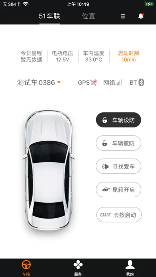 51车联APP不但支持无距离限制控制,还增加了蓝牙功能,在信号质量不好、没有GPRS的情况下,使用蓝牙连接,彻底解决客户带钥匙的繁琐事宜。 主要功能:
