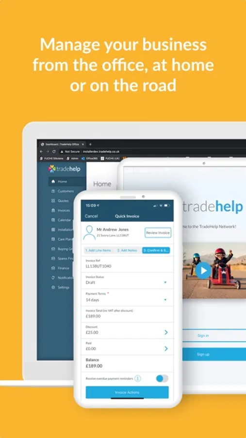 Manage your daily paperwork in the office, at home or on the road with the trades app from the UK’s No.1 Trade Network, TradeHelp.