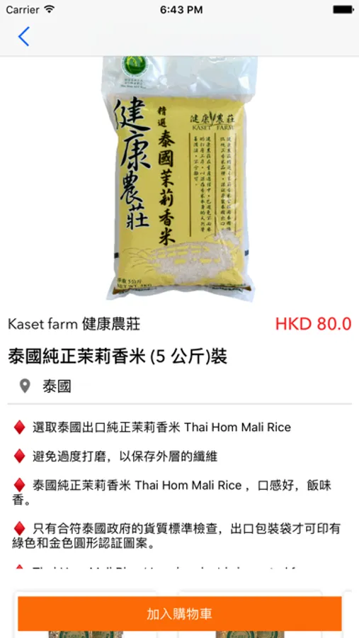 This APP is purporting to provide consumers with good quality Thai rice (Jasmine rice) and other products from Kaset farm.
