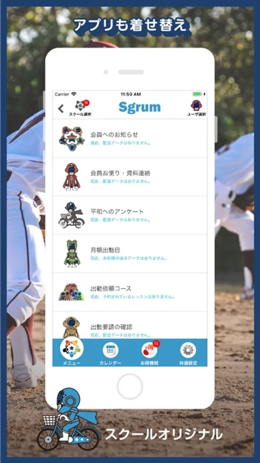 通われているスクールにおいてのレッスンの予約や振替依頼がSgrumアプリからできるようになりました。