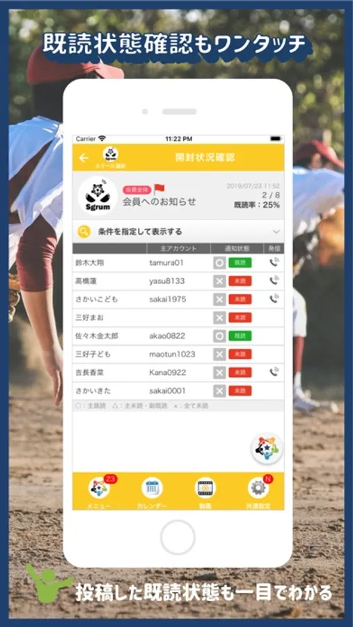 各投稿記事における会員の既読状態を投稿毎にすぐに確認できます。緊急時の際でも未読状態の方々に対して再連絡などの対応をすることが可能です。