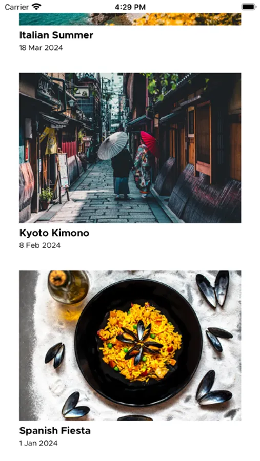 Activities are coloured by day. Your images and notes for all activities will all be here. Tap to open details for an activity and tap the links to launch map directions, dial phone numbers and/or open websites.