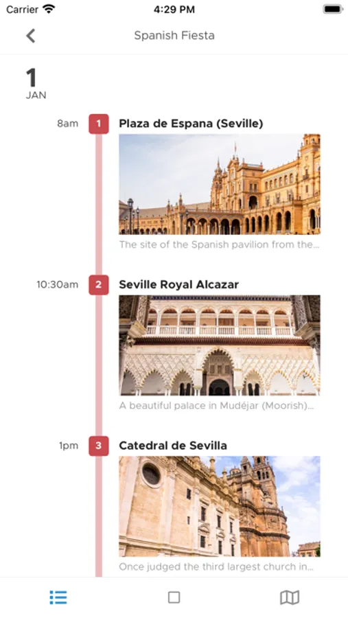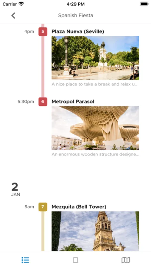1. A clear day-by-day itinerary view of all the place-activities you have planned for your trip.