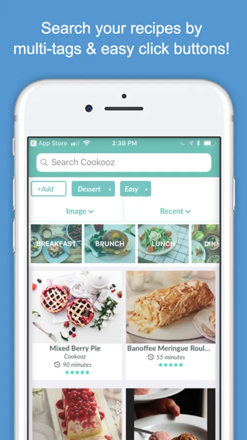 - TAG & SEARCH recipes using multiple tags, by meal type, cuisine and/or ingredients. Create customizable new tags based on your own preferences (eg Easy, Christmas, Carb-free)