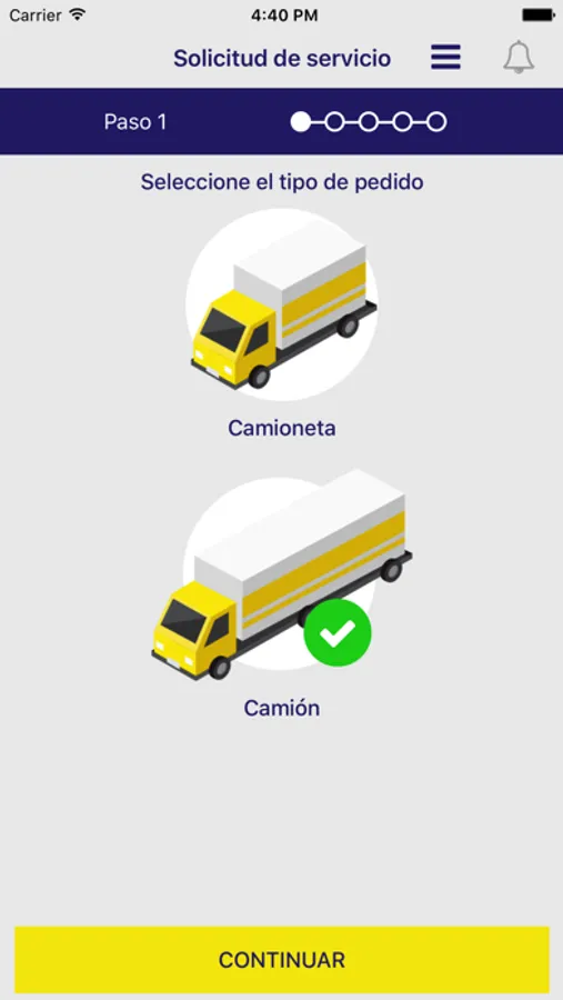 ---- Elegir el tamaño del vehículo